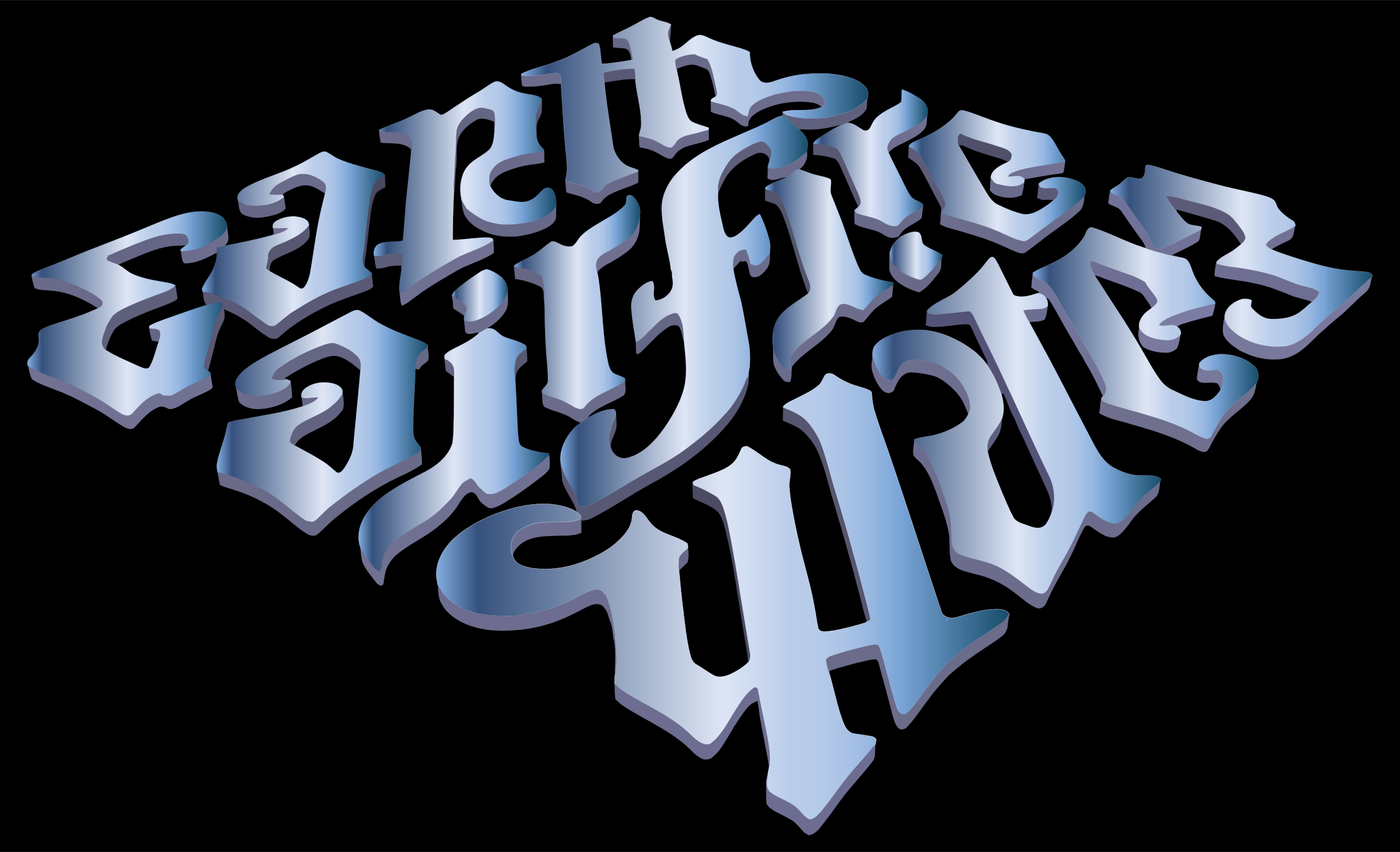 This features a large, ornate design with the words "Earth, Fire, Water, Air" written in an intricate pattern. Each word is written in a different color, making it visually appealing and easy to read. The design appears to be made of metal or another metallic material, giving it a shiny appearance. This artistic piece could be used as decoration or even as a symbol for the elements that make up our world.
