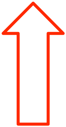 This features a red arrow pointing upwards, which is set against a tan background. The arrow has a distinct orange line running through it, adding to its visual appeal. This design element suggests that the arrow may be used for navigation or as a symbol of direction. The combination of the red and tan colors creates an interesting contrast in the image, making it visually engaging.