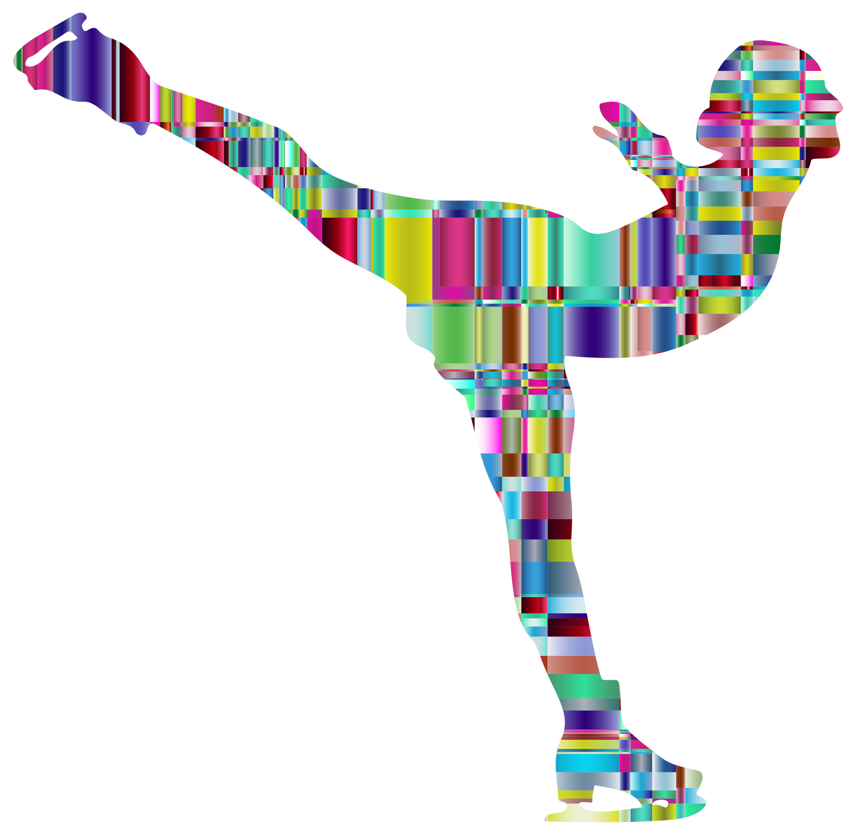 This features a colorful and artistic representation of a person doing a kickboxing move. This unique visual is created by combining multiple images of the same person, each with different colors and patterns. The resulting collage gives an impression of motion and energy, as if the individual is in action. The various colors and patterns used in this image create a vibrant and dynamic scene that captures the essence of kickboxing. This artistic representation can be appreciated for its creativity and ability to convey the excitement and intensity of the sport through visual means.