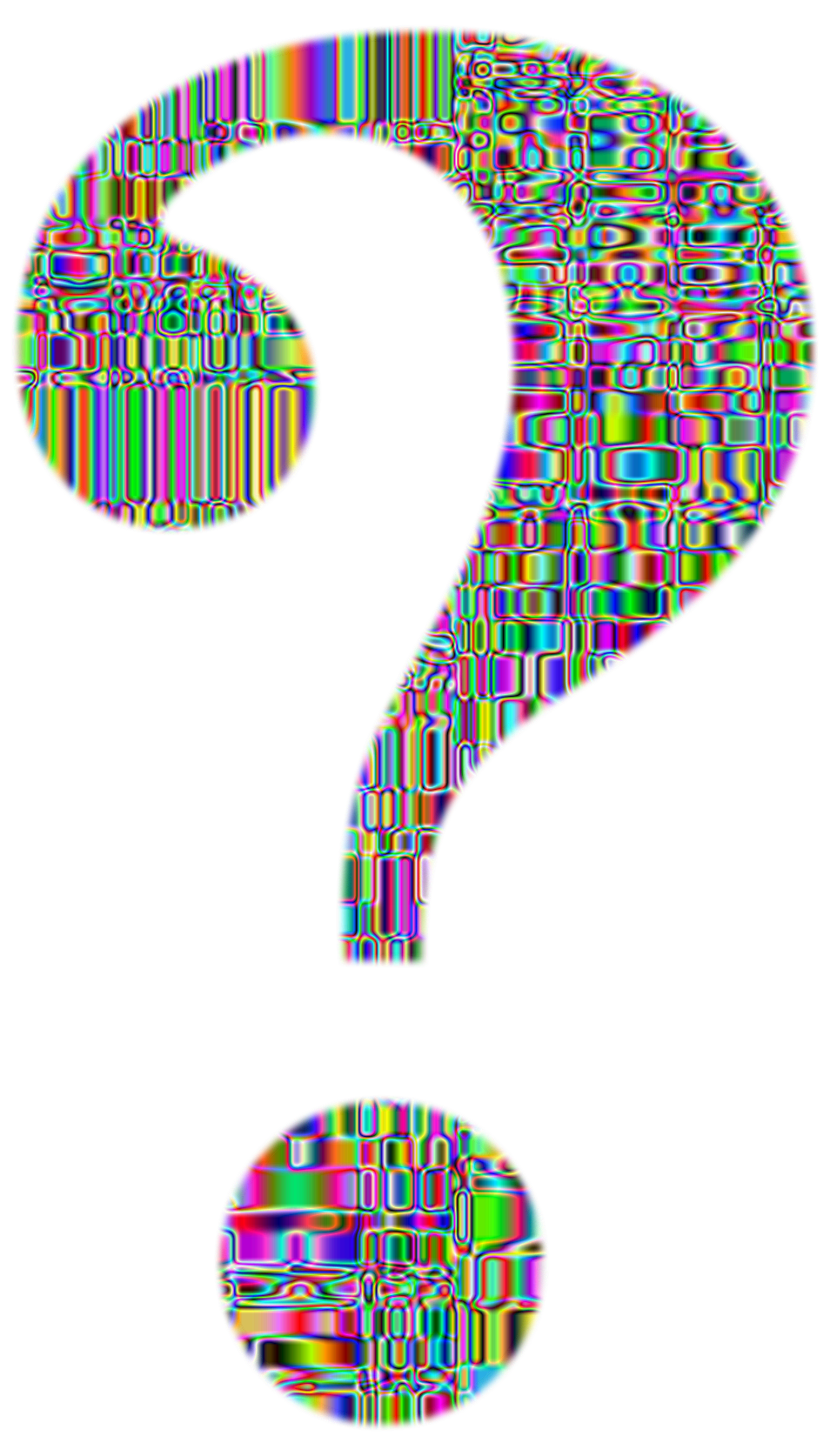 This features a large, colorful question mark with a white background. The question mark is filled with various colors and patterns, making it visually striking. It appears to be an artistic representation of the classic symbol for curiosity or uncertainty. The vibrant colors and intricate design give the impression that this question mark could be used as a decorative piece or even as a unique logo.
