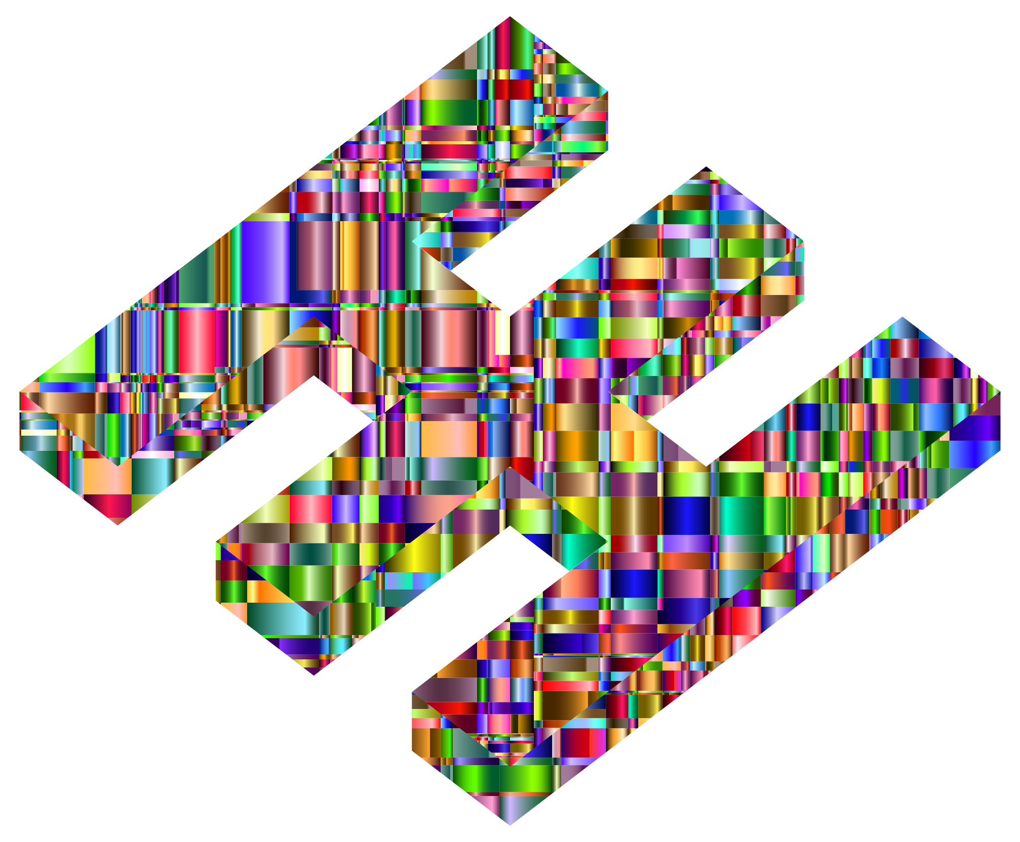 This features a colorful and intricate design, which appears to be an abstract representation of the letter "I" or possibly a logo. The design is made up of various shapes and colors that are interconnected in a visually appealing manner. The different shades of color create a vibrant and lively atmosphere, making it an eye-catching piece of artwork. This unique design could be used for branding purposes or as a decorative element to add visual interest to any space.
