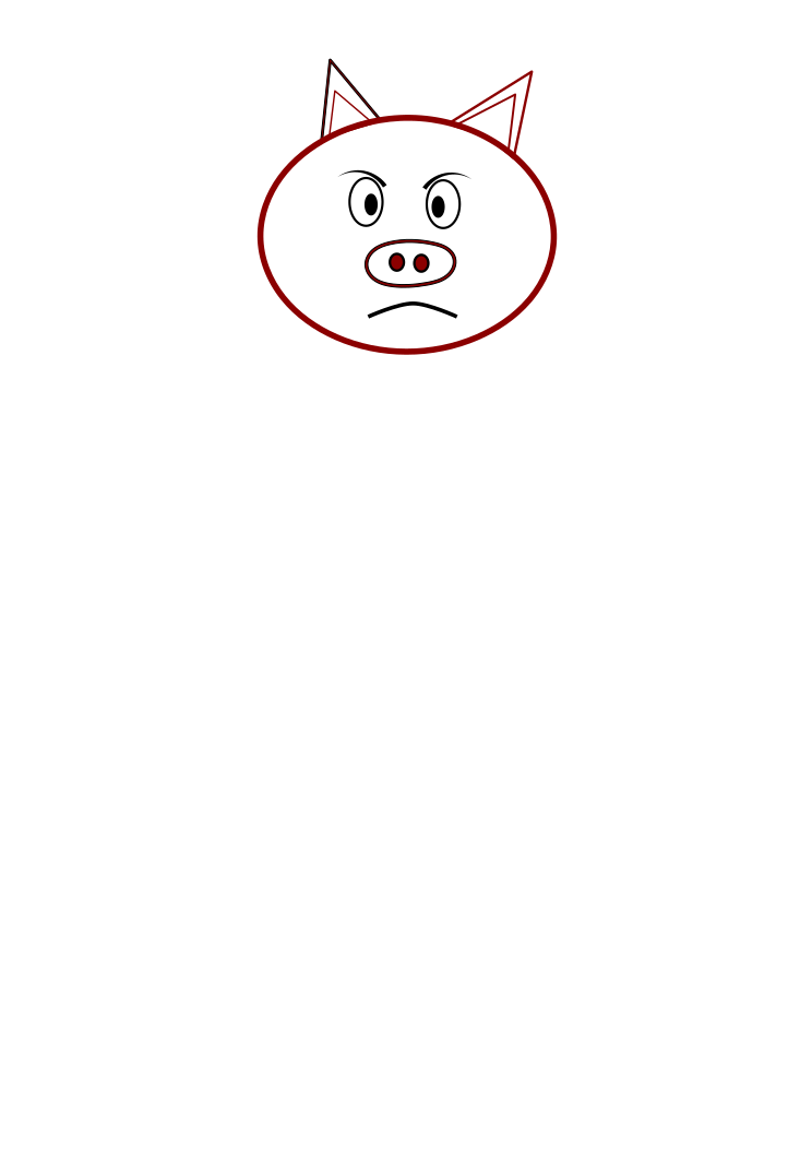 This features a red circle with a pig's face drawn inside of it. The pig appears to be angry, giving the impression that it is frowning or making an unpleasant expression. The drawing itself is quite simple and does not include any additional details or colors beyond the red circle.