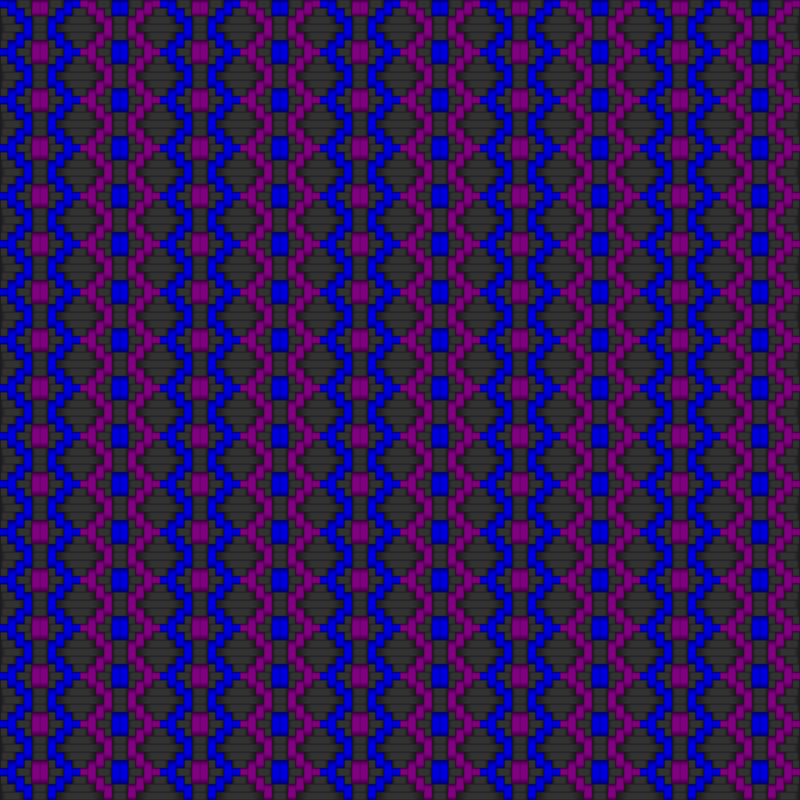 This features a purple and blue checkered pattern with many little squares on it. Each square is made up of smaller squares, creating an intricate design. The squares are placed vertically, with some squares being larger than others. The color scheme consists of shades of both purple and blue, giving the pattern a unique and eye-catching appearance.