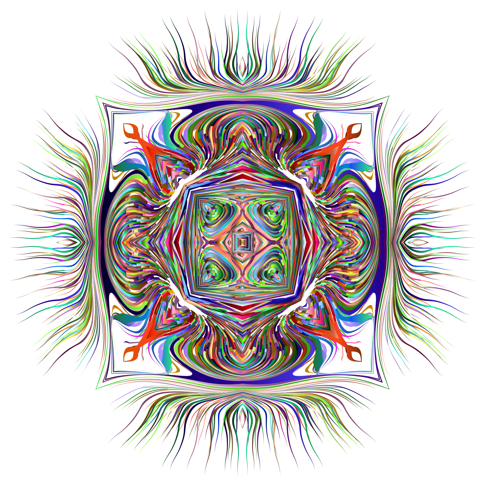 This features a colorful, abstract design with a central square shape. Inside the square, there are various other shapes and patterns that create an intricate and visually appealing composition. These shapes come in different colors, adding to the vibrant atmosphere of the piece. Overall, it is a captivating artwork that showcases creativity and skill in design.