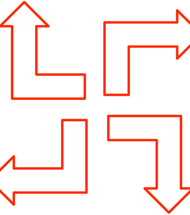 This features a large, red hexagonal shape with six arrows pointing in different directions. These arrows are arranged in such a way that they form an intricate pattern, resembling the Star of David or a swastika. The overall appearance is quite striking and eye-catching.