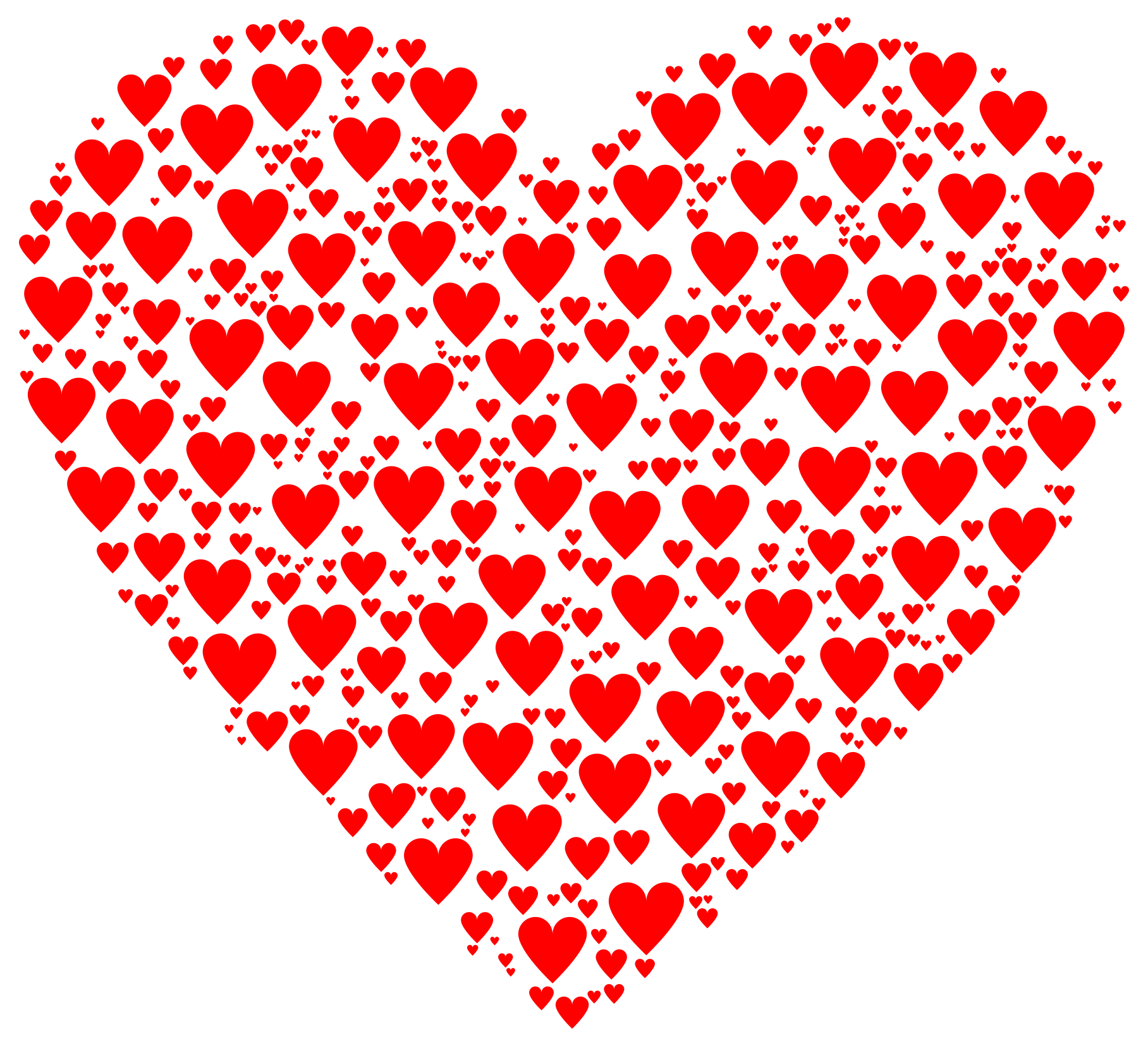 This features a large, red heart made up of numerous smaller hearts. These smaller hearts are scattered throughout the scene in various sizes and positions, creating an intricate pattern that resembles a real heart. The overall effect is visually striking and captivating, with each individual heart contributing to the larger heart's shape. This unique design showcases creativity and attention to detail, making it an appealing visual representation of love or affection.