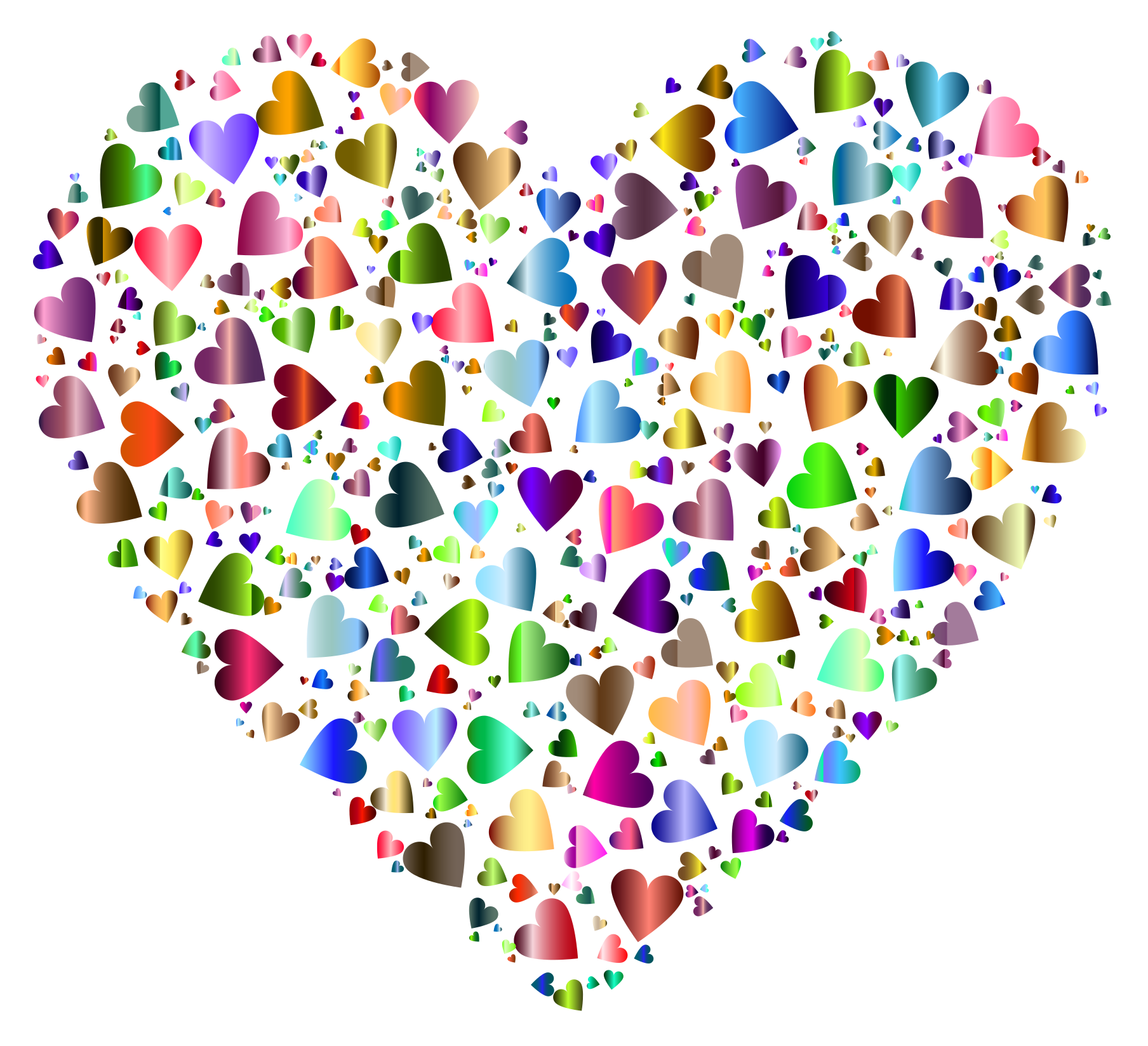 This features a large, colorful heart made up of many smaller hearts. These smaller hearts are scattered throughout the scene in various sizes and colors, creating a vibrant and lively appearance. The heart is positioned towards the center of the image, with its edges extending outwards to fill the frame. This unique design showcases the creativity and artistic talent behind this visually appealing piece.