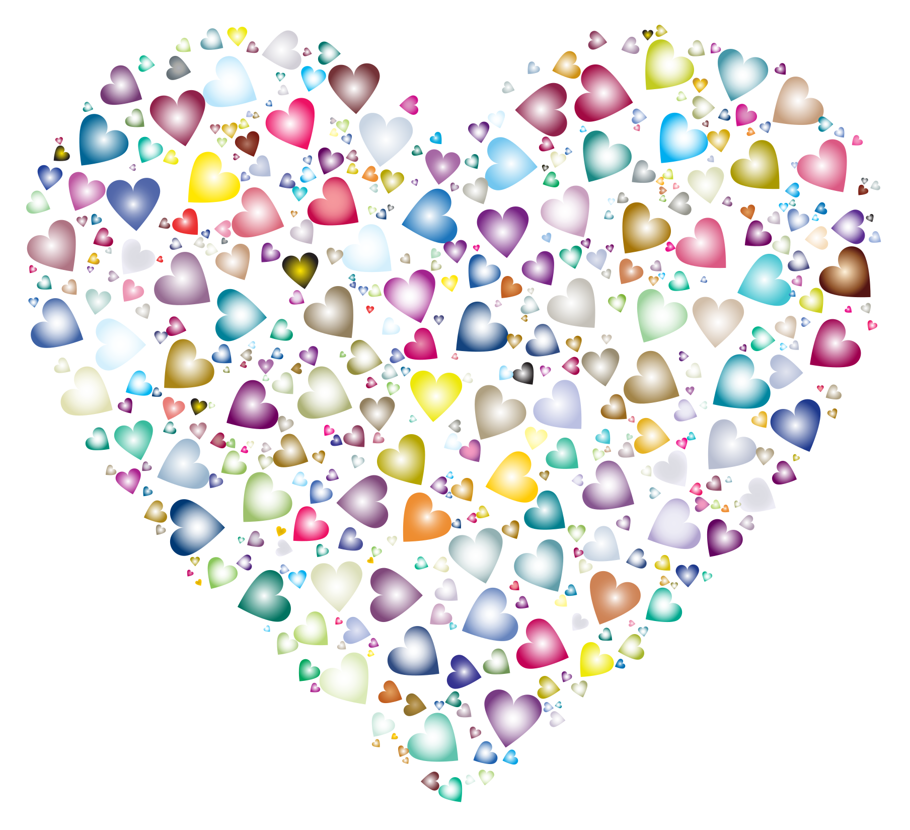 This features a large heart made out of smaller hearts, creating an intricate and colorful design. These hearts are arranged in various positions throughout the heart, filling it with a vibrant array of colors. The hearts come in different shapes and sizes, adding to the visual appeal of the overall composition. This unique artwork showcases creativity and attention to detail, making it an eye-catching piece that can be appreciated by viewers.