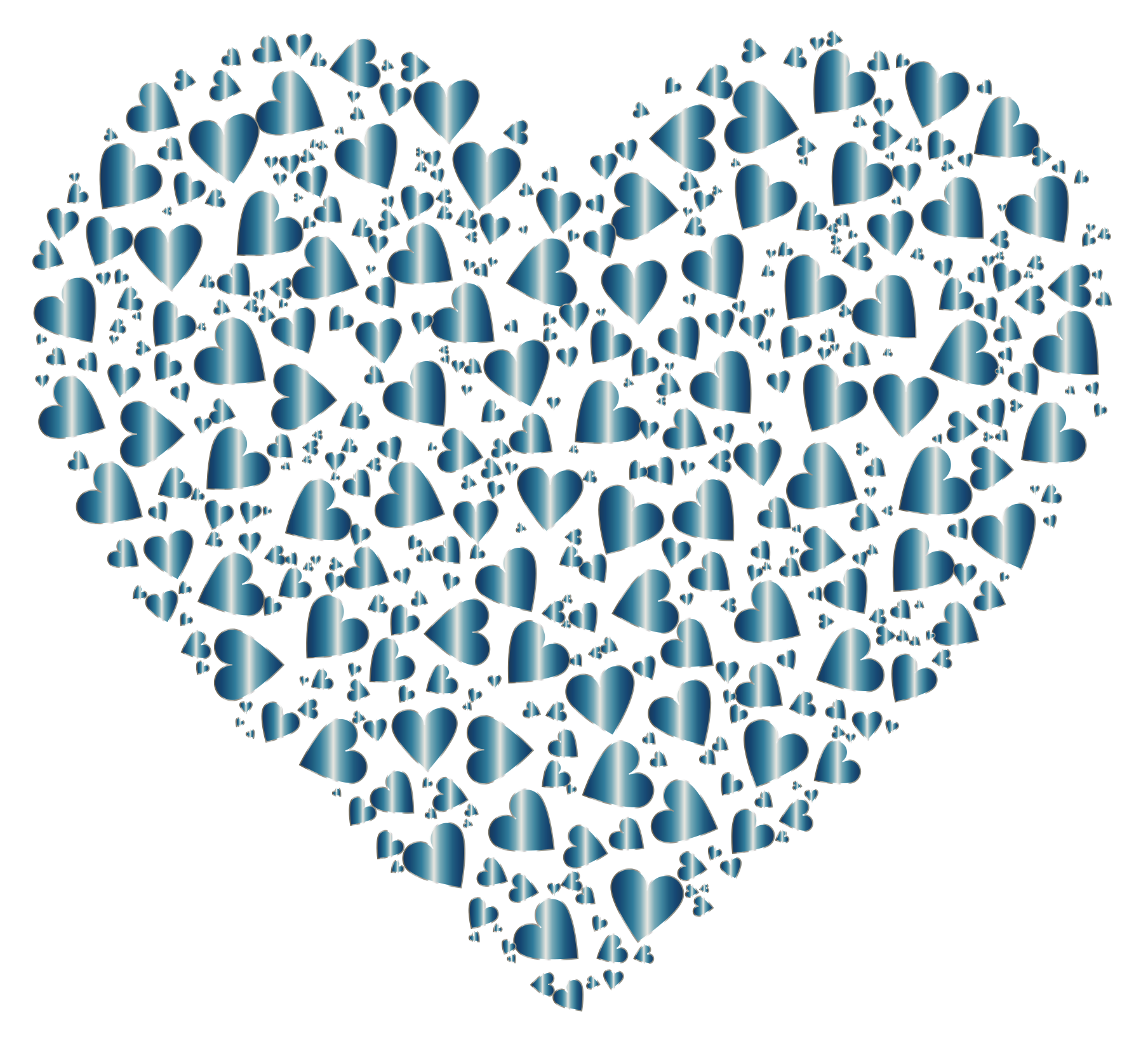 This features a large blue heart made up of smaller hearts. These smaller hearts are scattered throughout the scene, creating a visually appealing and intricate design. The hearts come in various sizes and are positioned at different angles, adding depth and dimension to the overall composition. This unique artwork showcases creativity and attention to detail, making it an interesting focal point for any space where it is displayed.