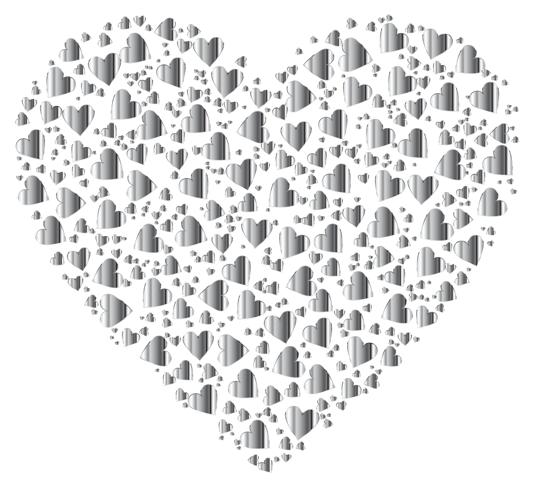 This features a large heart made up of smaller hearts, all of which are black in color. These smaller hearts vary in size and are arranged throughout the larger heart, creating an intricate pattern. The overall effect is that of a close-up view of a heart made out of smaller hearts, showcasing their unique shapes and sizes. This artistic representation of a heart can be appreciated for its creativity and attention to detail.
