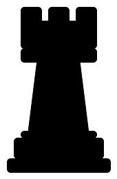 This features a black and white chess rook, which is a piece used in the game of chess. It has a distinctive shape with four sides, making it easily recognizable as part of the chessboard. The rook's design is simple yet elegant, with its outline being clearly defined against the background. This particular image showcases the rook prominently, allowing viewers to appreciate its unique features and design.