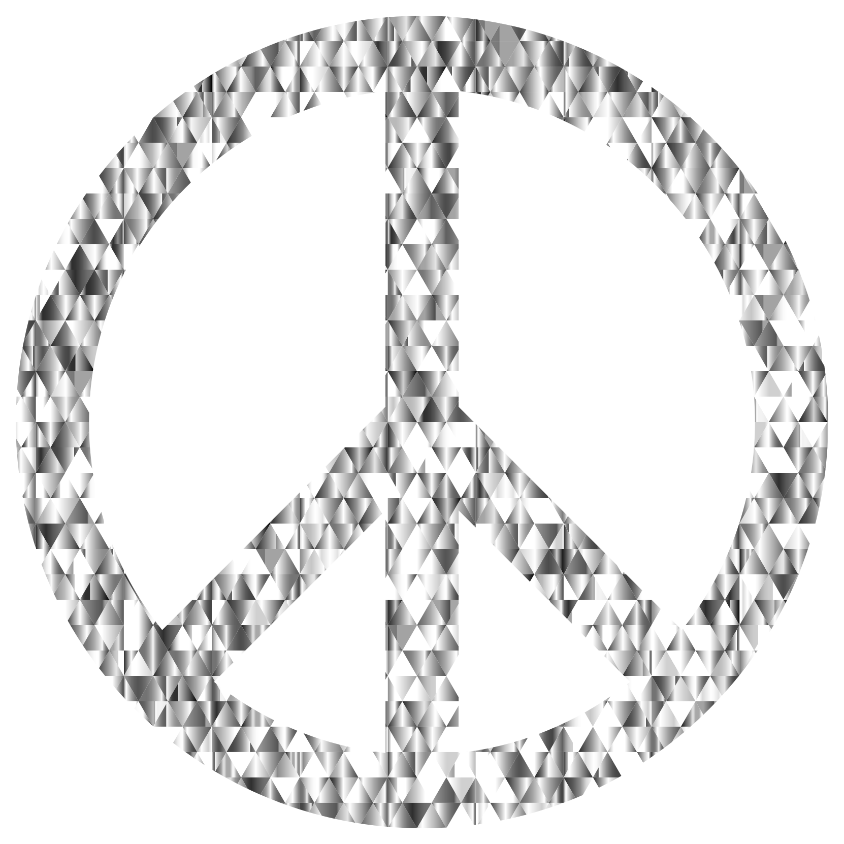 This features a peace sign made out of diamond shapes. The sign is circular in shape and has a shiny appearance, giving it an elegant look. The diamonds are arranged in such a way that they form the outline of the peace sign, creating a visually appealing design. This unique representation of the peace sign adds a touch of sophistication to its traditional symbolism.