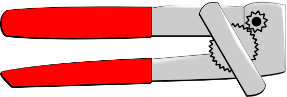 This features a cartoon-like can opener with red handles. It is depicted in black and white, giving it an old-fashioned appearance. The can opener has a gear visible on the side, adding to its realistic design. This creative representation of a can opener showcases both the red handles and the intricate details of the tool.
