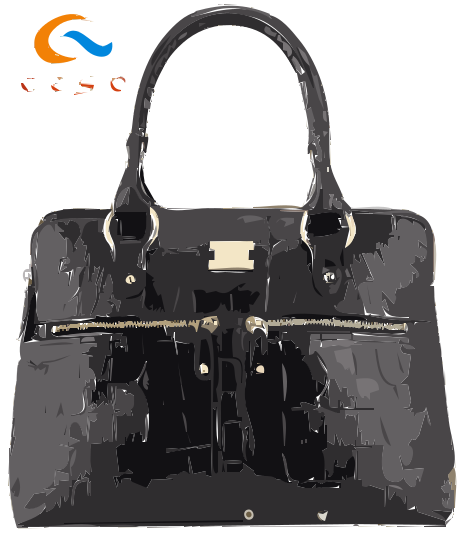 This features a black leather handbag with a zipper. The bag is large and has a logo on it, which needs to be removed. The bag appears to be made of high-quality materials and is likely designed for carrying personal belongings or other items. The design of the bag suggests that it may be suitable for both casual and formal occasions, making it a versatile accessory.