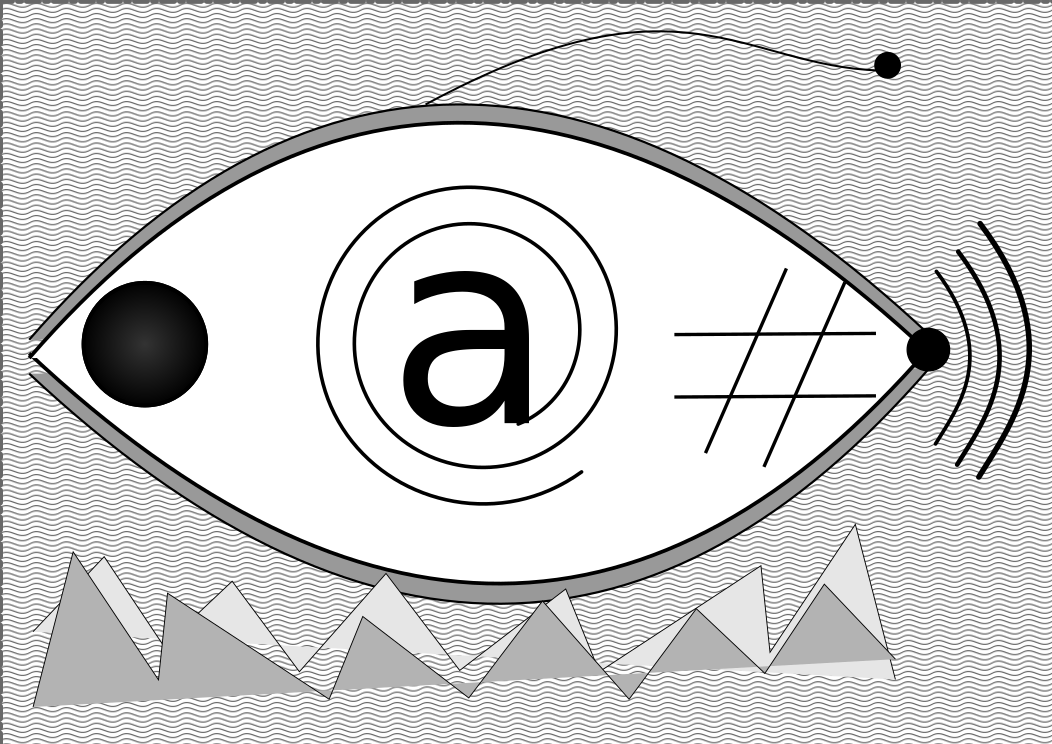This features a unique and creative representation of an eye, with the pupil replaced by a "@" symbol. This artistic interpretation adds a modern touch to the classic concept of an eye. Surrounding the main eye, there are dots and a "#" symbol, further enhancing the visual appeal of the image. The combination of these elements creates a striking and intriguing piece that stands out from typical representations of eyes.