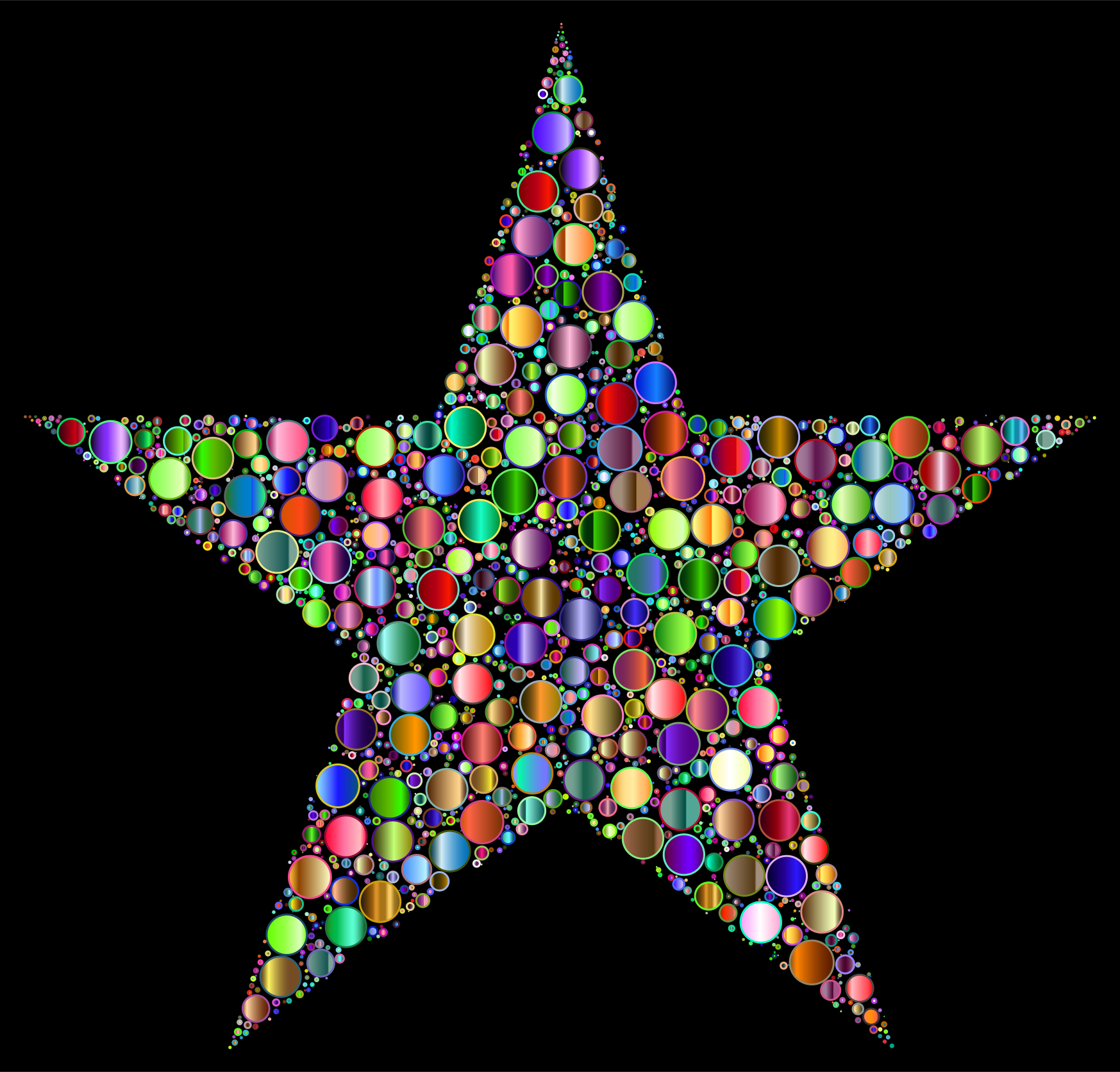 This features a large, colorful star made up of many smaller stars. These smaller stars are arranged in various positions around the main star, creating an intricate and visually appealing pattern. The colors of the individual stars vary, adding to the vibrant nature of the overall design. This unique and eye-catching image could be used for decorative purposes or as a creative art piece.