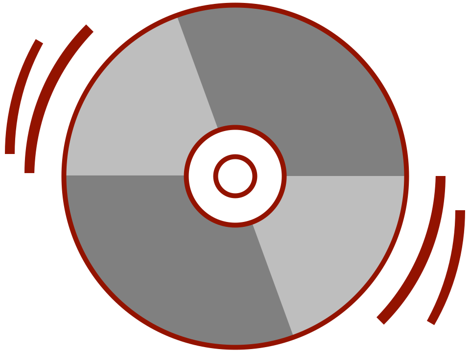This features a stylized CD icon, which is an illustration of a record or compact disc. It appears to be a close-up view of the center of the disc, with a red circle in the middle and a gray background surrounding it. The design gives off a retro vibe, reminiscent of older technology. This image could potentially represent nostalgia for the days when CDs were more prevalent or serve as an artistic representation of music and entertainment.