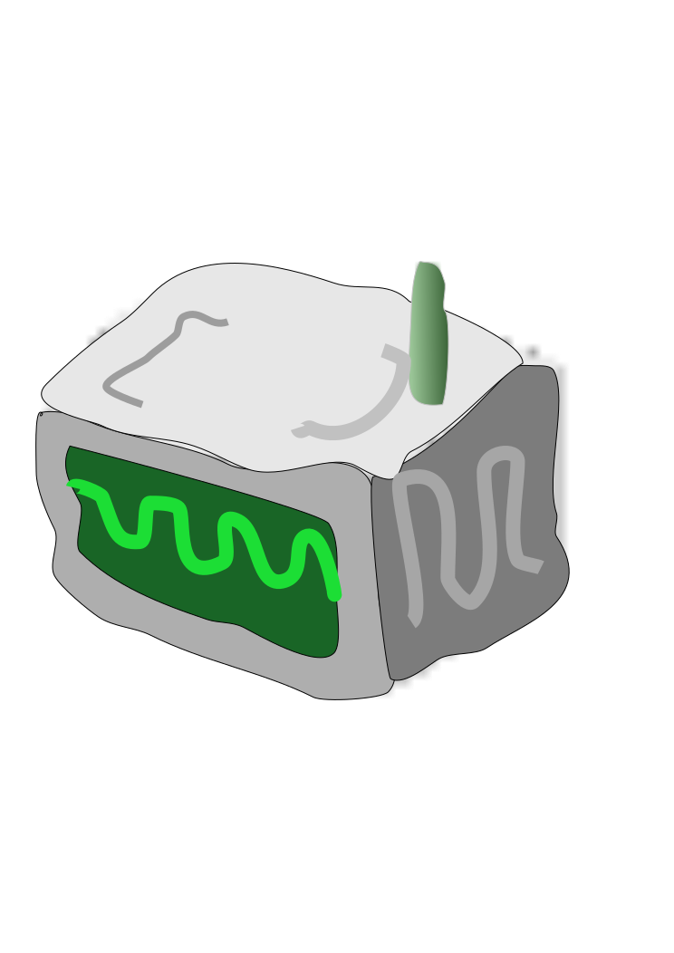 This features a gray colored device with a square shape, which appears to be an electronic signal device. It has a green antenna in the top right corner and is surrounded by a green background. The device also displays signal waves on it, indicating that it may be used for communication or data transmission purposes. Overall, the image presents a unique and interesting piece of technology with its distinctive design and color scheme.