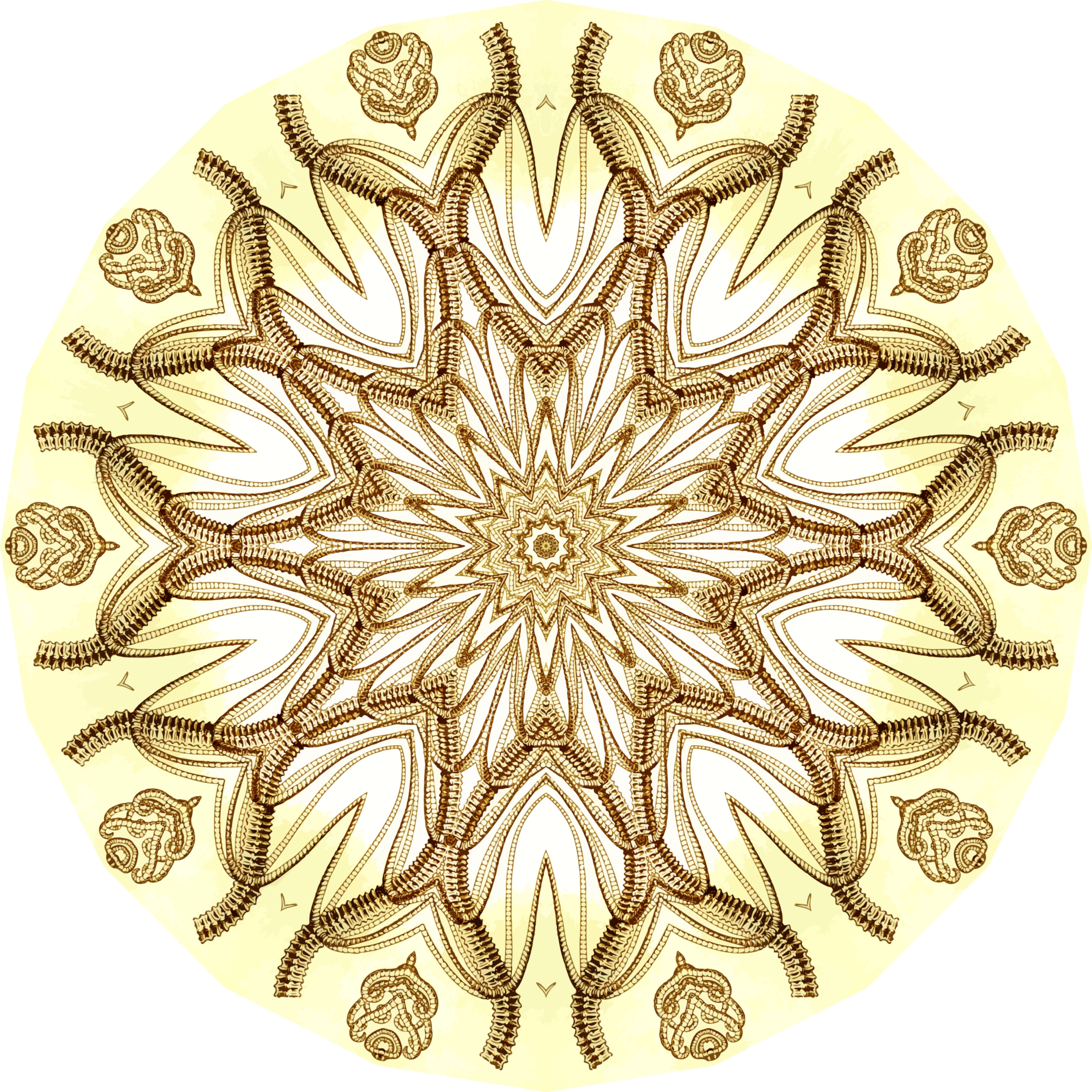 This features a circular design with an intricate pattern, likely inspired by the work of Ernst Haeckel. The design is composed of various echinoderms, which are depicted in a visually appealing manner. The echinoderms are arranged around a central point, creating a sense of rotation and symmetry within the circular shape. This artistic piece was created using Paint.net, where the artist utilized wedges from Haeckel's drawing to form the design by rotating them around the center point. The final result is an eye-catching and unique pattern that showcases the beauty of nature through the echinoderms' shapes and forms.