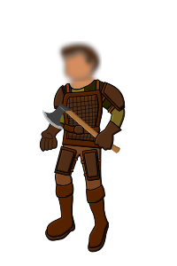 This features a man dressed in medieval armor, holding an axe in his hand. He appears to be the main focus of the scene, standing out against a plain background. The man's attire suggests that he is a warrior or knight from a bygone era, possibly participating in a battle or training exercise. His stance and grip on the axe indicate his readiness for action, showcasing his skill and expertise with the weapon.