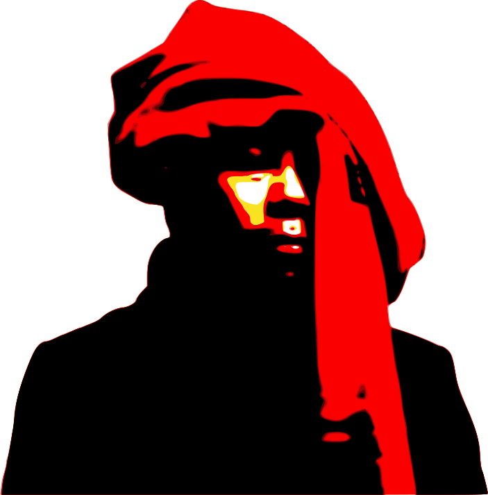 This features a man wearing a red turban on his head. He is dressed in black clothing, giving him an elegant and sophisticated appearance. The man's face is partially obscured by the red fabric of the turban, adding to the intrigue of the scene. The overall composition of the image creates a sense of mystery and allure, inviting viewers to imagine the story behind this enigmatic figure.