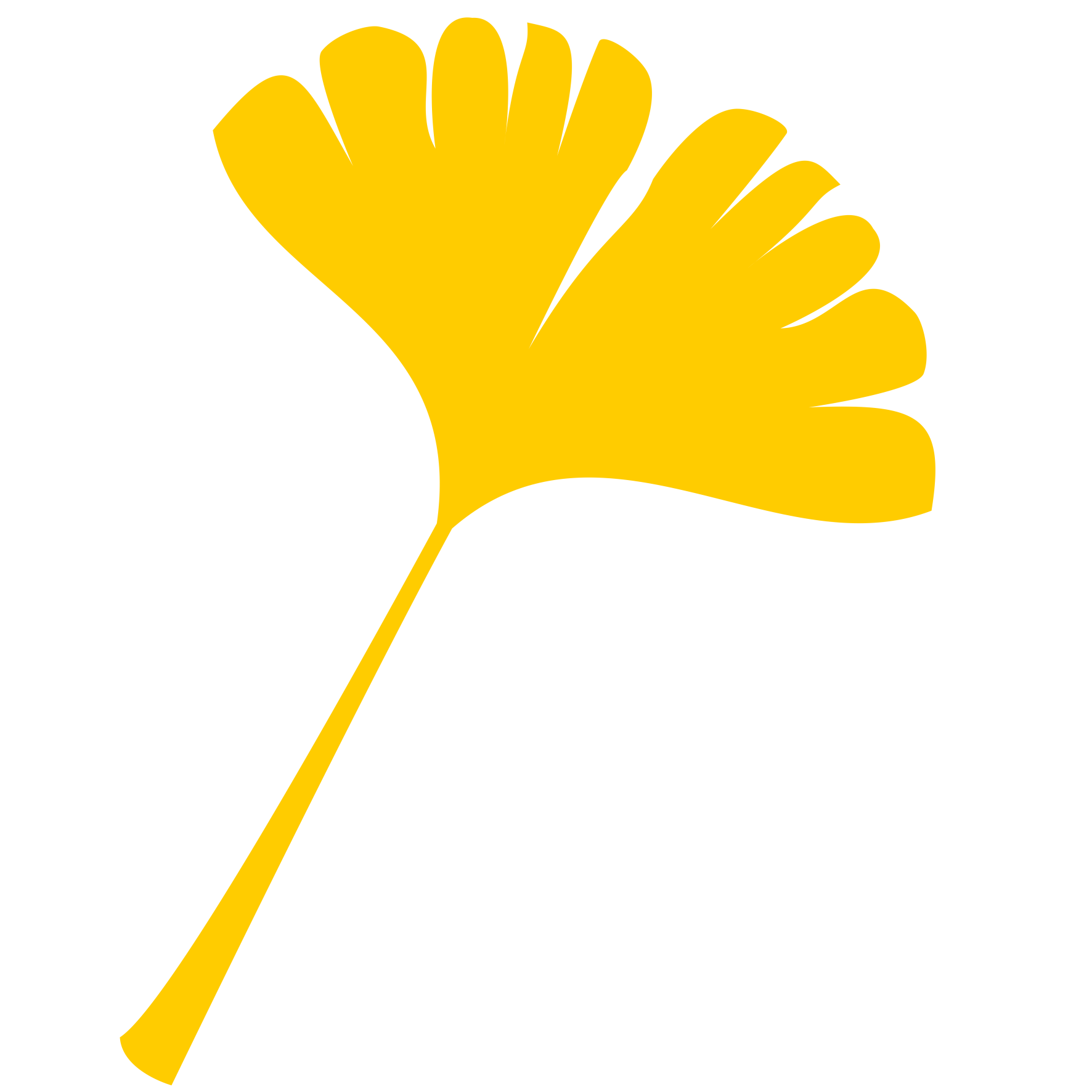 This features a yellow leaf with a long stem, which is the main focus of the picture. The leaf appears to be a gingko leaf, and it is placed against a white background. The leaf's shape is slightly curved, giving it an elegant appearance. The close-up view of the leaf highlights its vibrant yellow color, making it stand out against the plain white backdrop.