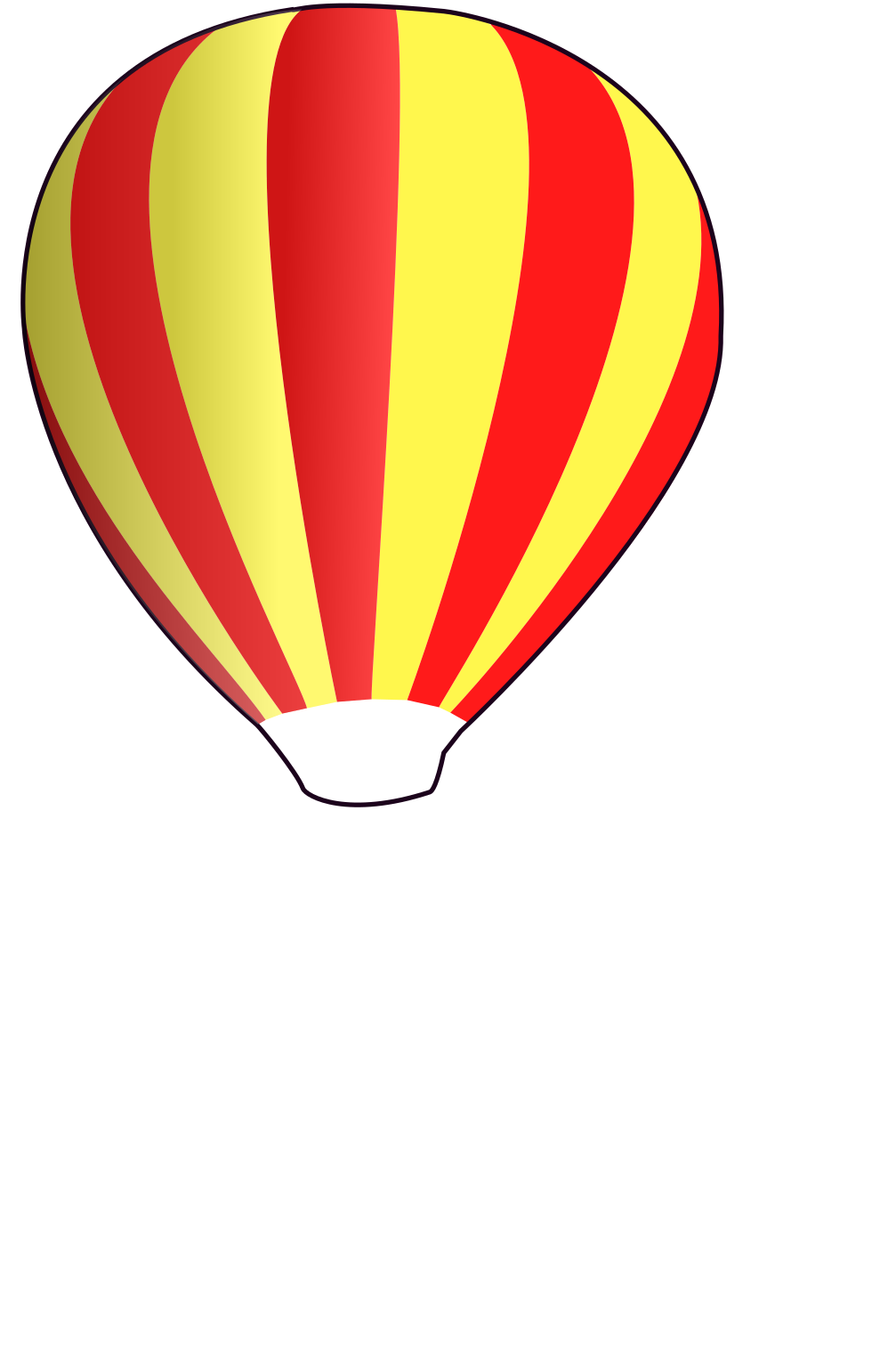 This features a large, colorful hot air balloon with red and yellow colors. It is floating in the sky, taking up most of the frame. The balloon appears to be made up of multiple segments that are connected together, giving it a unique and eye-catching appearance. The image has been edited using InkScape, which can be seen through the different stages of development visible in the image.