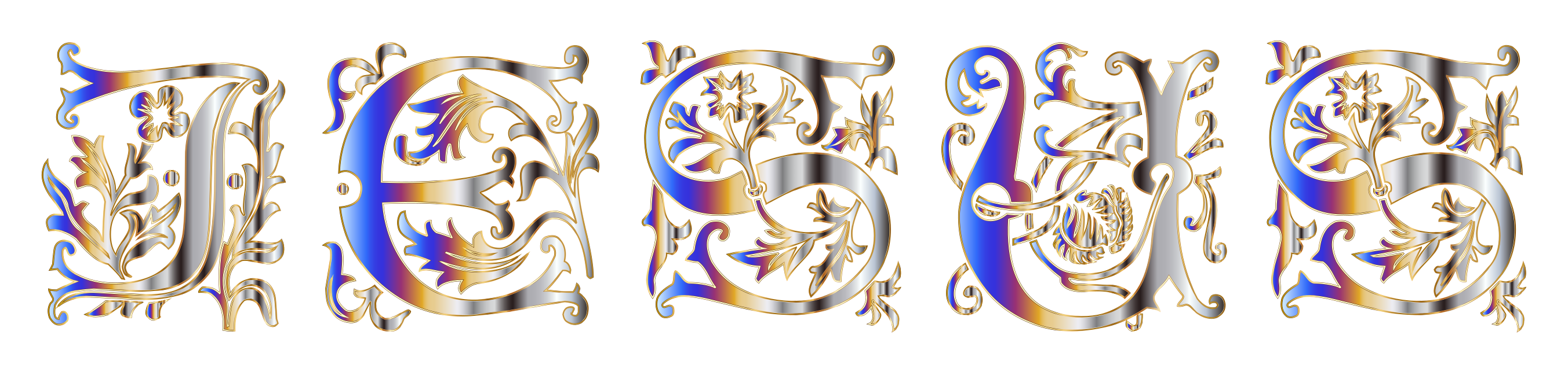 This features a series of letters arranged in an artistic manner, forming the word "Jesus." These letters are displayed in various orientations and sizes, creating a visually appealing composition. The arrangement of these letters gives the impression that they are floating or hovering above the background, drawing attention to the central theme of the image. This creative display of text can be appreciated for its design and artistic qualities, as well as its religious significance.