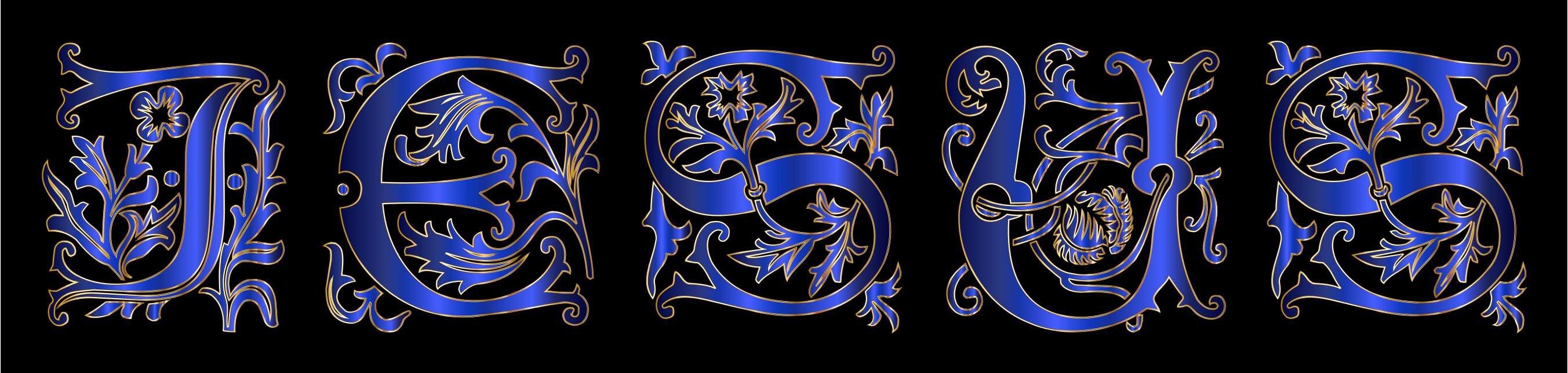 This features a large blue sign with the word "Jesus" written in an elegant and decorative manner. The letters are arranged in a visually appealing pattern, making it stand out as a unique piece of artwork or design. The use of blue color adds to the overall aesthetic appeal of the sign, creating a striking contrast against any background. This artistic display could be used for various purposes such as promoting religious events, showcasing faith-based art, or simply adding an eye-catching decoration to a space.