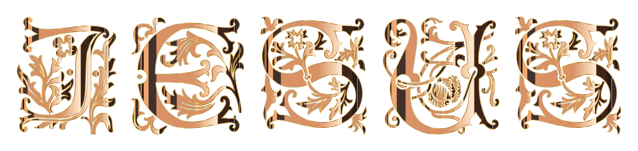 This features a series of decorative letters and words arranged in an artistic manner. These letters are written in a fancy font, giving the impression that they might be related to religious or spiritual themes. There is no background visible in the image, which further emphasizes the focus on the text itself. The arrangement of these letters creates a visually appealing composition that draws attention and invites viewers to appreciate the craftsmanship behind this artistic display.