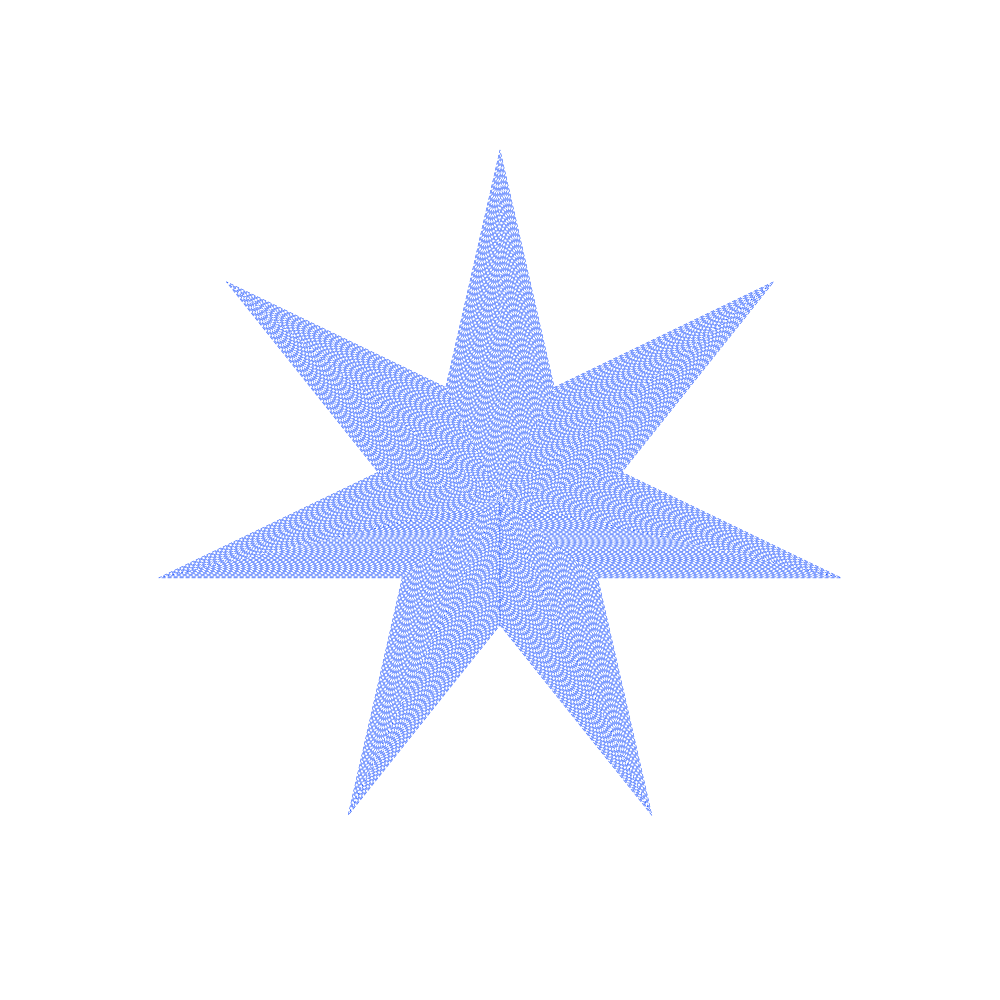 This features a blue star with a continuous path of dots that make up the shape. This design gives it an etch-a-sketch appearance, which is reminiscent of the popular childhood toy. The star's outline is made up of numerous small dots, creating a visually appealing and intricate pattern. The blue color adds a sense of depth and contrast to the overall design, making it an eye-catching piece of artwork or decoration.