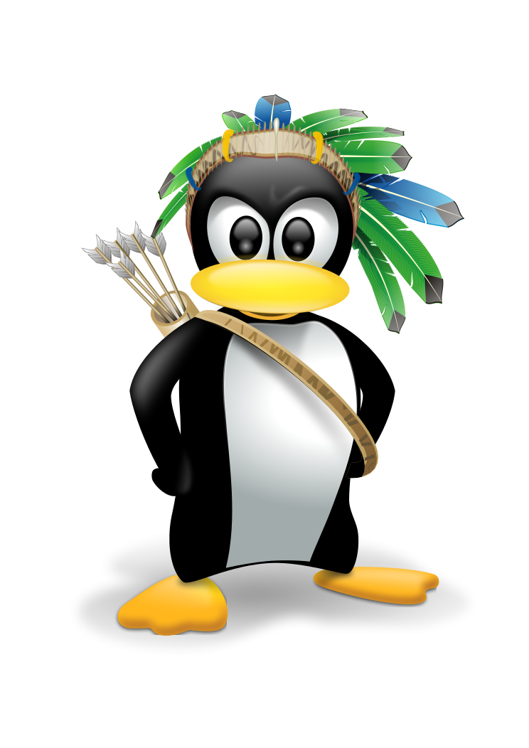 This features a cartoon penguin with a unique appearance, wearing a headdress made of feathers and holding an arrow in its hand. The penguin is standing on one foot, giving it a playful and quirky look. The feathered headpiece adds a touch of whimsy to the character, making it stand out from typical penguin depictions. This creative design could be used for various purposes such as advertising or entertainment, capturing the attention of viewers with its unconventional and eye-catching style.