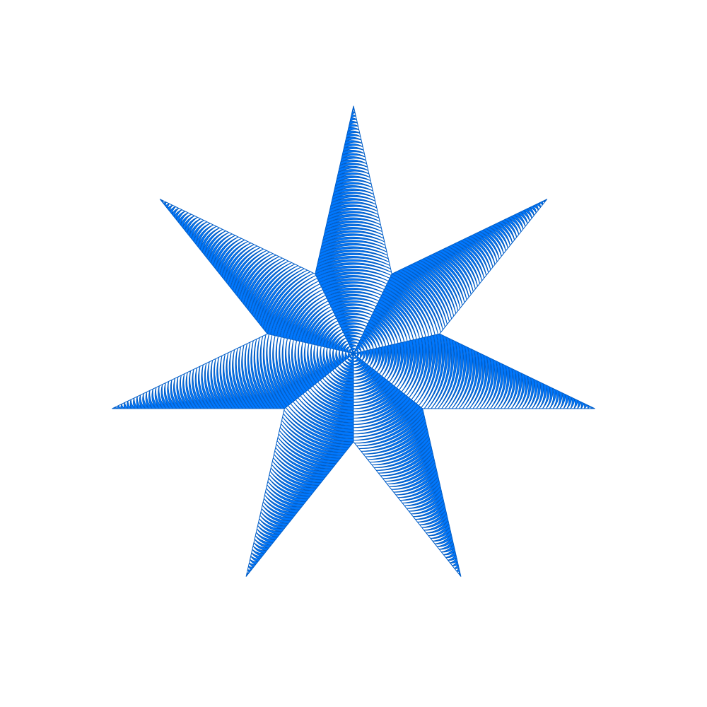 This features a blue star with seven points, which is an intricate and visually appealing design. The star's shape is composed of multiple lines that create the illusion of depth and dimension. This artistic representation of the star can be appreciated for its simplicity yet complexity in terms of visual elements. The blue color adds a sense of calmness and tranquility to the overall composition, making it an attractive focal point or decorative piece.