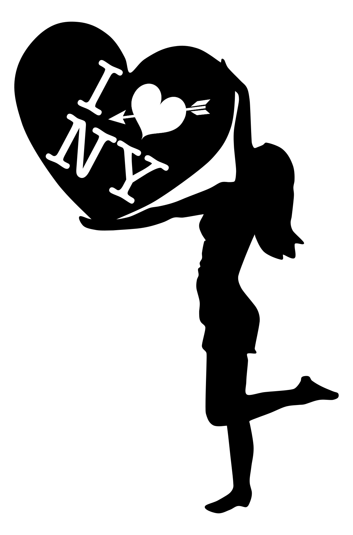 This features a woman standing in front of a heart that says "I <3 NY" on it. She is holding the heart above her head, showcasing her love for New York City. The heart itself has an arrow pointing upwards, indicating that she is proud to be from or visiting this iconic city. This image could be used as a decoration or a statement piece in someone's home or office, reflecting their fondness for the Big Apple.