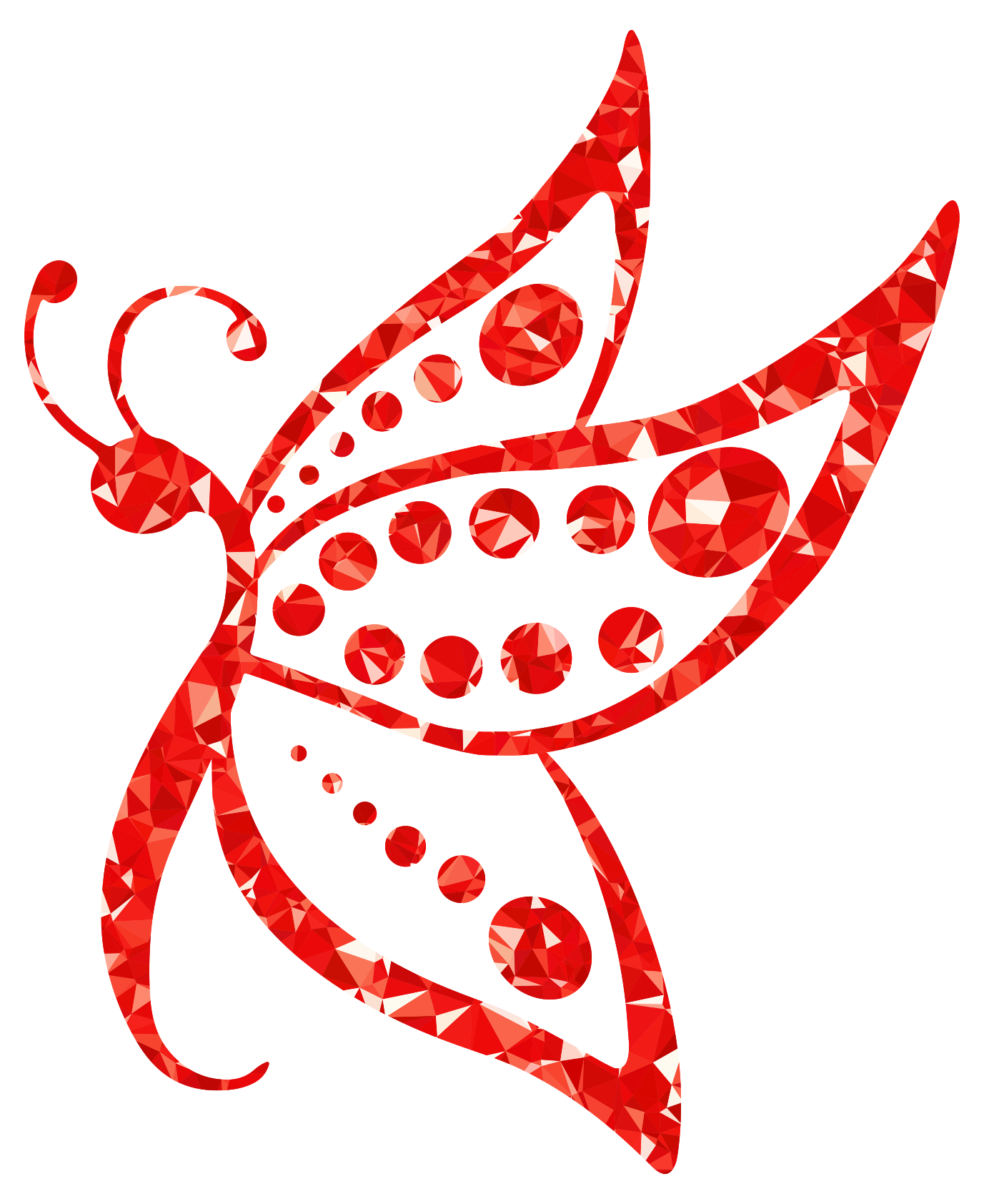 This features a red butterfly with a pattern of small circles on its wings. The butterfly is the main focus of the picture, and it appears to be made up of various shapes and colors. The design of the butterfly gives it an intricate and detailed appearance. The overall effect is that of a beautifully crafted piece of artwork or decoration.