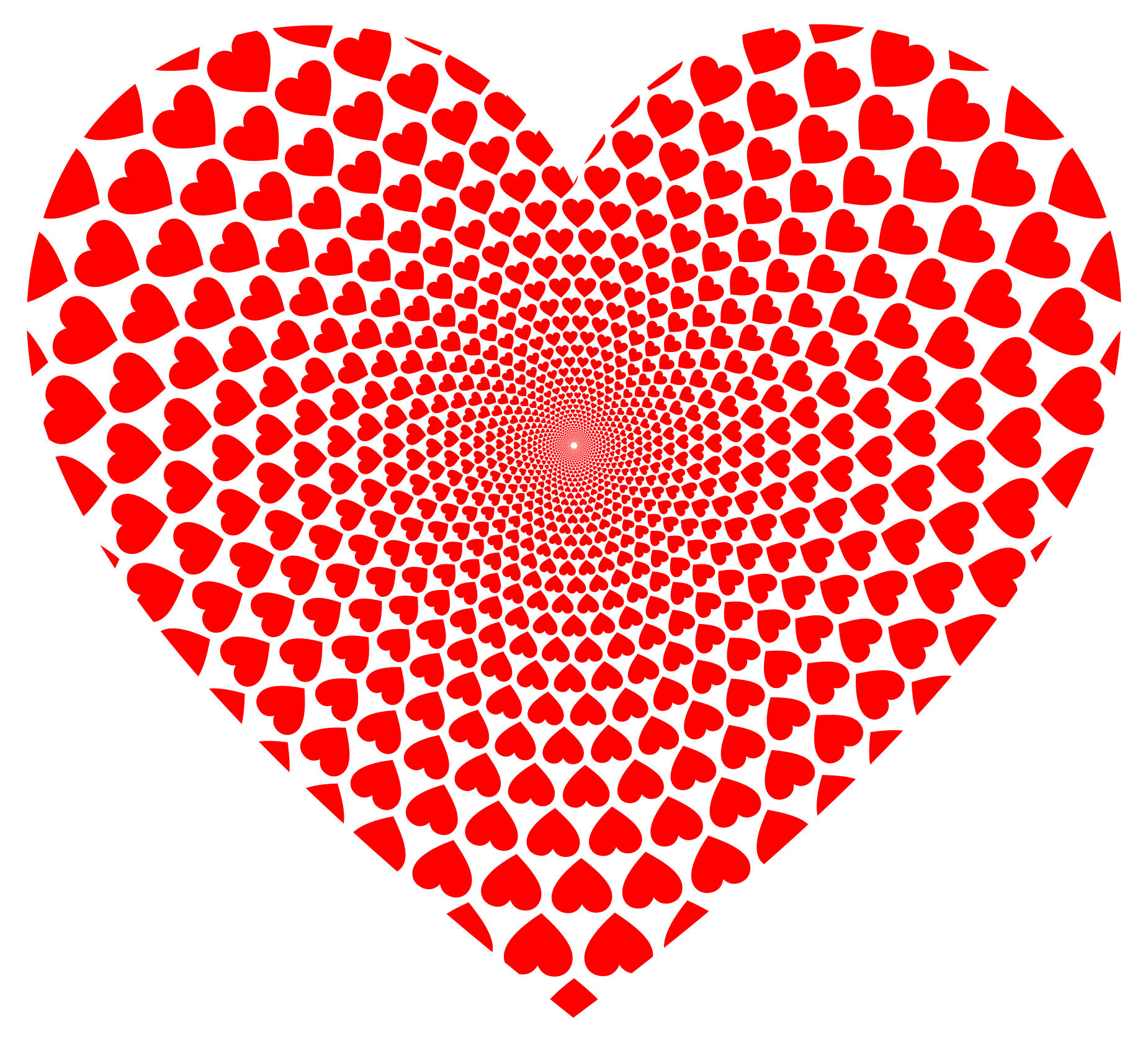 This features a large, red heart made up of smaller hearts. These smaller hearts are arranged in a circular pattern, creating an intricate and visually appealing design. The hearts vary in size, with some being larger than others, adding depth to the overall composition. This unique representation of a heart is both creative and eye-catching, making it an interesting focal point for any artistic or decorative piece.