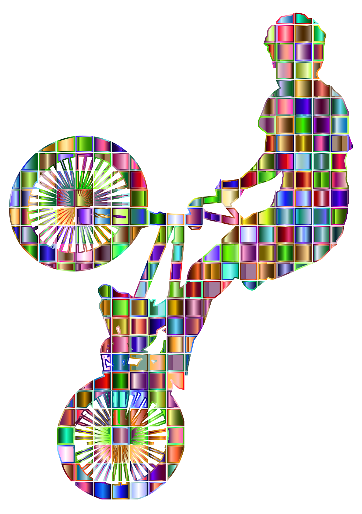 Tags: abstract, art, athlete, bicycle, bike, boy, checkered, chromatic, colorful, geometric, male, man, mosaic, prismatic, rainbow, ride, sport, square, transportation, trick, vehicle, bicycle colorful