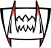 This features a large, sharp-toothed creature with red and black teeth. It appears to be a cartoon or illustration of an animal with a menacing appearance. The teeth are prominently displayed in the foreground, while the rest of the creature is partially obscured by its own mouth. This unique design creates a striking visual effect that captures attention and evokes a sense of danger or fear.