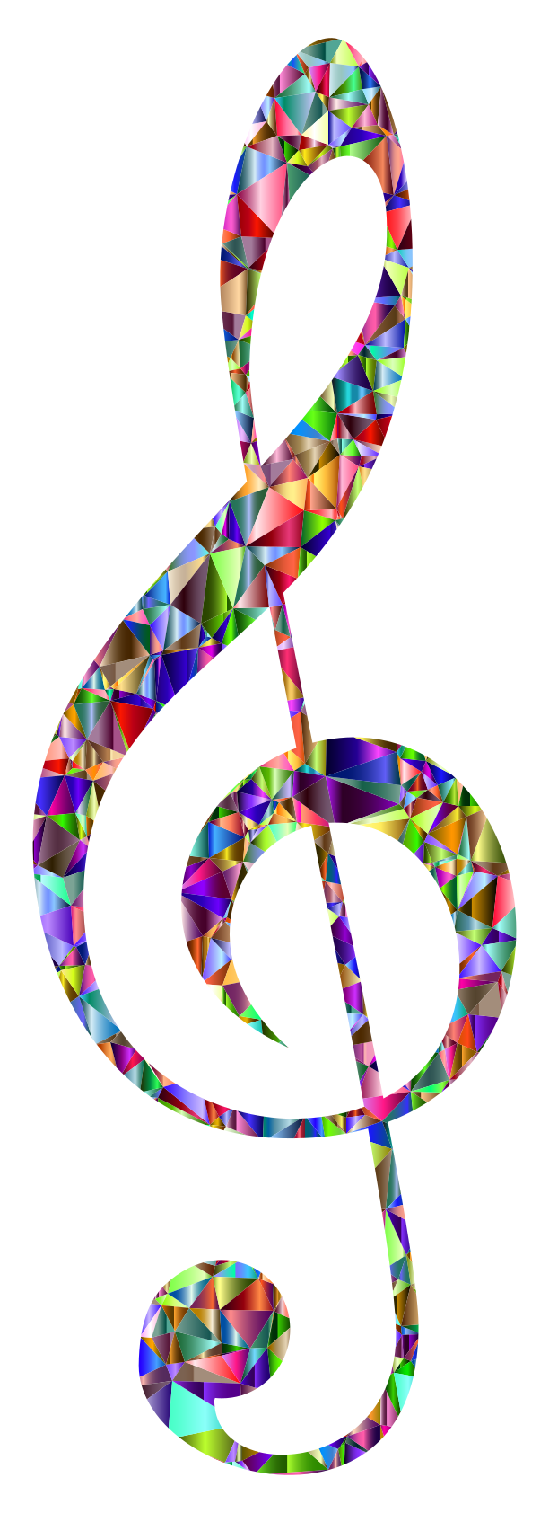 This features a colorful musical note, which is part of the chromatic clef. This note has a unique and vibrant appearance due to its multicolored design. It stands out against the white background, drawing attention to itself as an artistic representation of music. The combination of colors on this note creates a visually appealing piece that can be appreciated by both musicians and non-musicians alike.