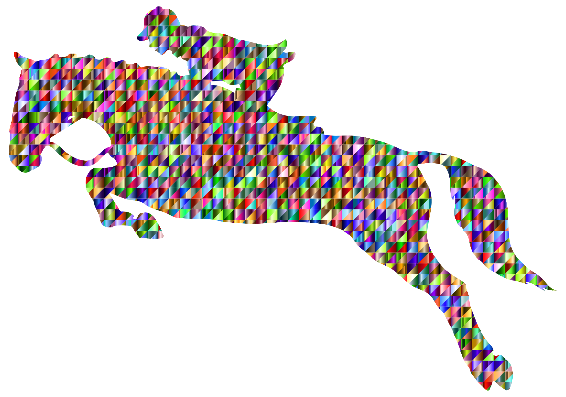 Tags: abstract, art, chromatic, colorful, dressage, geometric, horse, jockey, jumping, low poly, polygon, prismatic, rainbow, ride, riding, triangle