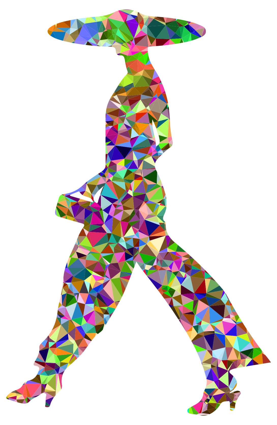 Tags: abstract, art, chromatic, colorful, female, geometric, low poly, polygon, prismatic, rainbow, triangle, walking, woman
