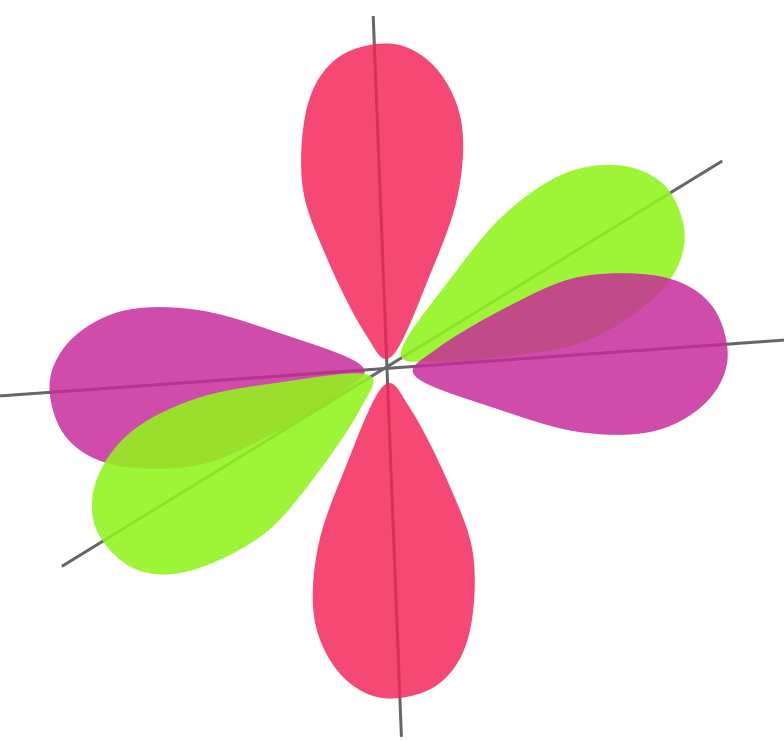 This features a colorful flower-like shape made up of five petals, each with different colors. These petals are arranged in a circular pattern and appear to be floating on the wall or surface they are placed against. The colors used for the petals include pink, yellow, green, orange, and purple, creating an eye-catching display. This artistic arrangement of colored petals can serve as a decorative piece or an educational tool to teach about atomic orbitals in a visually appealing manner.