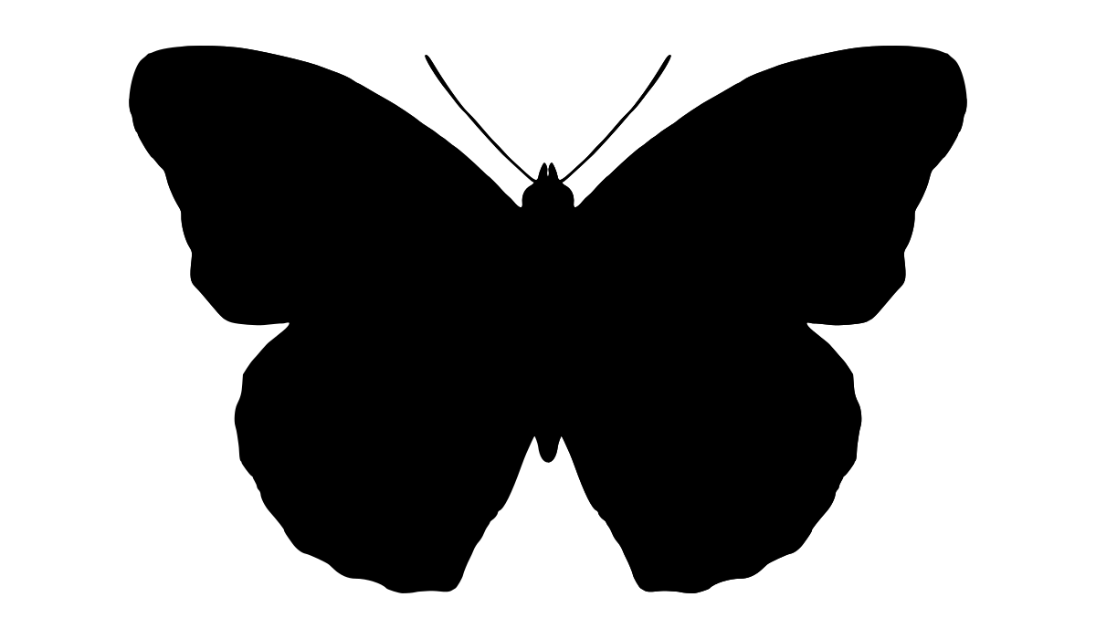 This features a black and white butterfly silhouette. It is an outline of the butterfly, showcasing its wings and antennae. The butterfly's wings are spread out, creating a striking contrast against the background. The antennae can be seen on either side of the butterfly, adding to its distinctive appearance. This silhouette creates an interesting visual effect that highlights the beauty of the butterfly without any distractions from color or additional details.