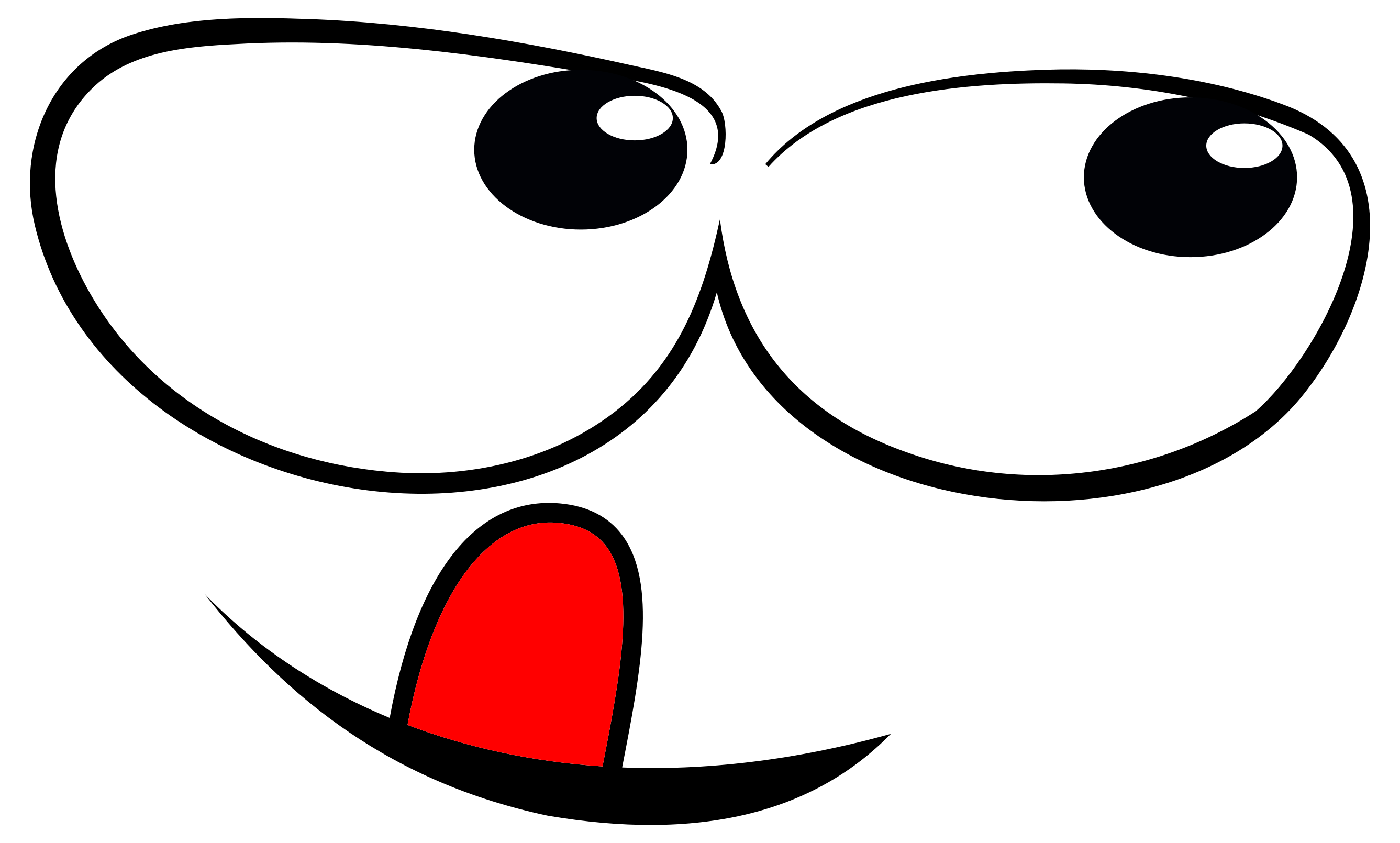 This features a cartoon face with big eyes and a red mouth. It appears to be smiling, but the expression is somewhat creepy due to its large size relative to the rest of the face. The face has a black outline, which adds contrast to the overall design. This illustration could be used for various purposes such as advertising or entertainment, but it may not pass the vibe check for some people due to its unsettling appearance.