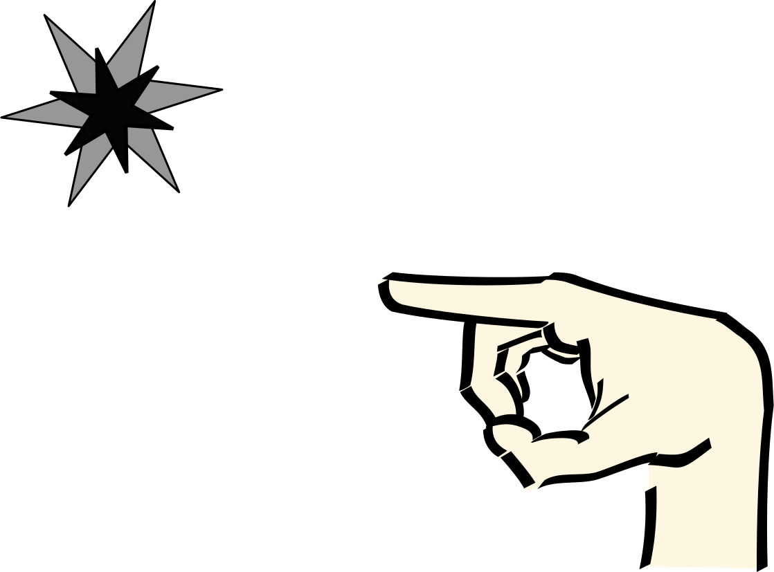 This features a hand pointing upwards, with the index finger prominently displayed. Above the hand, there is a small black star that appears to be in motion or floating. This drawing of a hand and a star creates an interesting visual effect, as if the hand is reaching towards the star. The overall composition of the image gives off a sense of curiosity and wonder, inviting viewers to imagine what lies beyond the reach of the pointing finger.