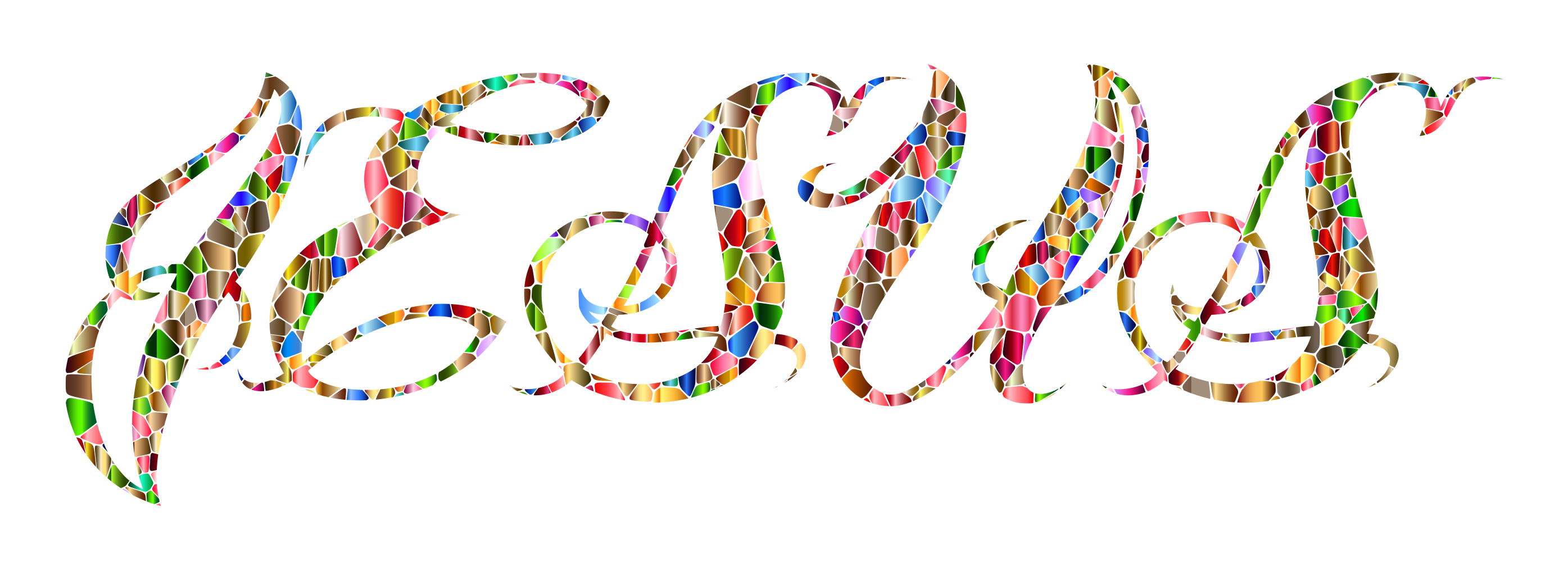 This features a colorful and artistic display of the word "Jesus" written in various colors. The letters are arranged in an intricate pattern, creating a visually appealing design. The different colors used for each letter add depth and interest to the overall composition, making it an eye-catching piece of artwork. This unique presentation of the word "Jesus" showcases creativity and skill in typography while also evoking a sense of spirituality through its vibrant colors and intricate arrangement.