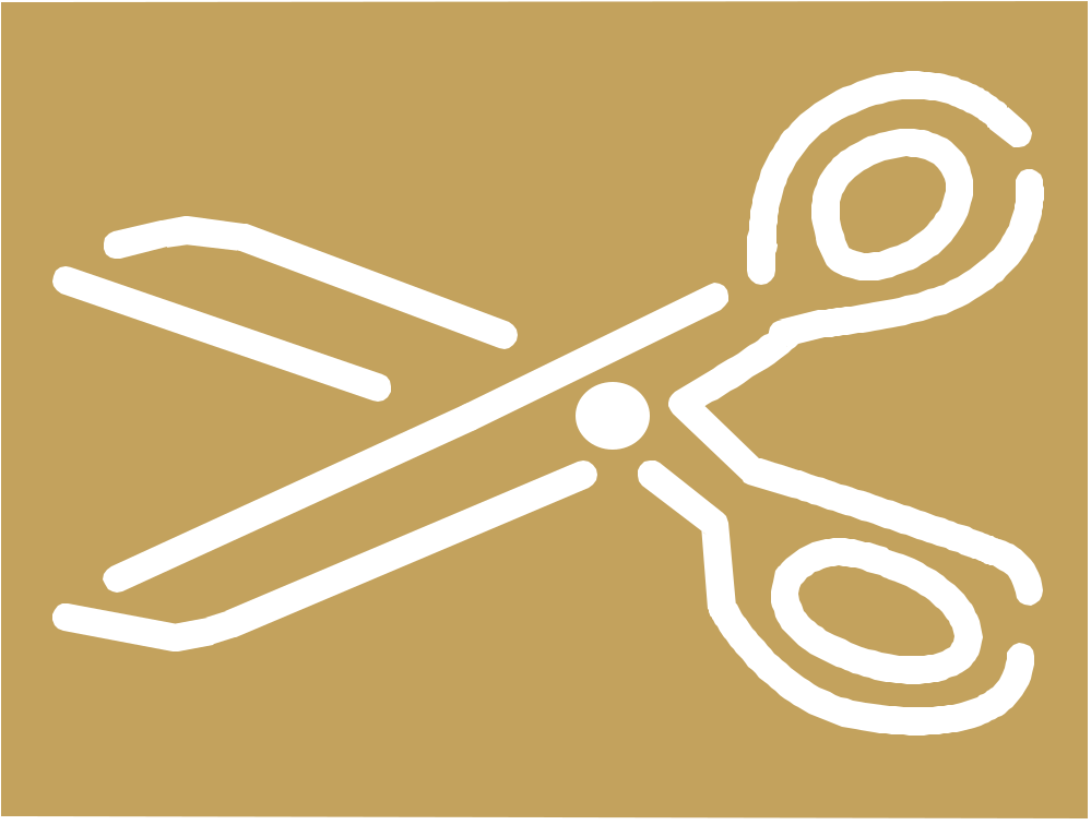 This features a pair of scissors with white outlines, depicted in silhouette form. They are shown from the side and have a beige color. The scissors are positioned on top of each other, creating an interesting visual effect. This artistic representation of scissors can evoke various interpretations or associations depending on the viewer's perspective.