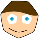 This is a cartoon-like representation of a boy's face, made up of various polygons. He has brown hair and blue eyes, giving him an innocent appearance. His smile appears genuine as he looks straight ahead, creating a friendly atmosphere in the image. This creative design could be used for various purposes such as advertising or artistic expression.