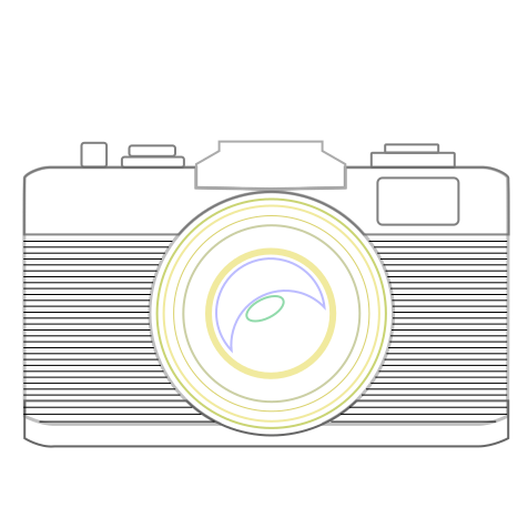 This features a black and white vintage camera with a yellow lens on it. The camera is prominently displayed in the center of the image, surrounded by a white background. The design of the camera appears to be minimalistic, focusing on its essential components rather than intricate details or decorative elements. This simple illustration effectively captures the essence of the vintage camera and highlights its unique features, such as the yellow lens.