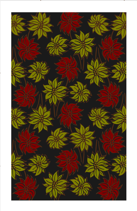 This features a beautifully designed pattern of red and yellow flowers on a black background. The flowers are arranged in various shapes, creating an intricate and eye-catching design. There is a mix of both large and small flowers throughout the pattern, adding depth and interest to the overall composition. This artistic piece could be used as a decorative element or even as a wallpaper for a room with a vibrant color scheme.
